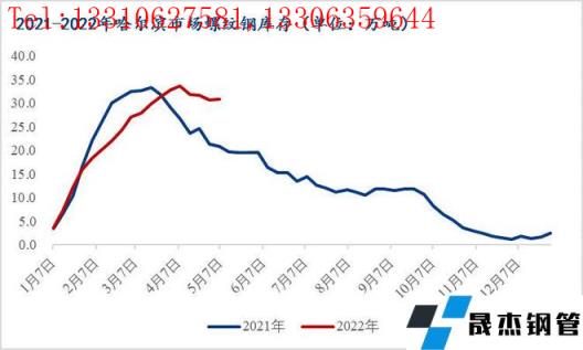5月4月哈爾濱市場(chǎng)螺紋庫(kù)存約30.9萬(wàn)噸同比增加10.0萬(wàn)噸環(huán)比增加0.2萬(wàn)噸、盤線約3.8萬(wàn)噸同比減少1.4萬(wàn)噸同比增加0.2萬(wàn)噸,目前螺紋庫(kù)存為近四年來(lái)的高位水平,且在連續(xù)去庫(kù)三周后出現(xiàn)小幅增庫(kù),除節(jié)日期間無(wú)縫厚壁鋼管廠家到貨增加以外,主要還是需求啟動(dòng)緩慢、成交偏淡所致。