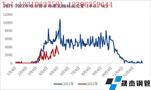 4月哈爾濱市場(chǎng)螺線成交量日均值在2233噸,同比減少3521噸減幅61%,今年成交高值在4330噸,去年成交高值在7900噸。疫情管控下,下游需求啟動(dòng)緩慢,同時(shí)商家對(duì)于后期預(yù)期較弱扣貨意愿較低,市場(chǎng)成交活躍度大大低于常態(tài)。