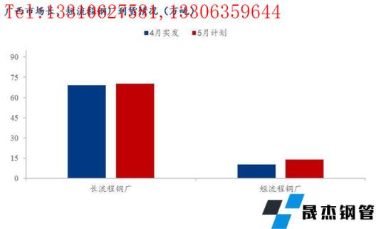 1、5月份廣西地區(qū)建筑材省內長流程無縫厚壁鋼管廠家計劃供應量共計70.3萬噸,環(huán)比增加1.2萬噸,增幅為1.74%;短流程無縫厚壁鋼管廠家到貨量為13.9萬噸,環(huán)比增加3.5萬噸,增幅為33.65%。