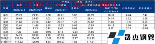 庫存方面:據(jù)統(tǒng)計,建材方面,以螺紋鋼為例,從三大區(qū)域來看,本周華東和南方分別環(huán)比增加8.5萬噸和5.2萬噸,北方環(huán)比減少10.08萬噸;從七大區(qū)域來看,除華北、東北和西北,其余各區(qū)域均有不同程度增加。從城市來看,杭州、南京、南昌、武漢等為主要增庫城市,北京、蘭州、貴陽等為主要降庫城市。其中國內(nèi)主要城市螺紋鋼、線材總庫存為1096.69萬噸,較上周(2022年4月29日)增加2.18萬噸,增幅為0.20%。同比減少30.10萬噸或減幅為0.20%。