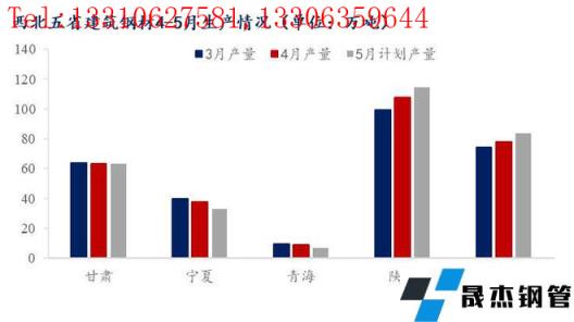 陜西區(qū)域:5月陜西主要無(wú)縫厚壁鋼管廠家建筑厚壁無(wú)縫鋼管總產(chǎn)量114.7萬(wàn)噸,其中螺紋鋼計(jì)劃產(chǎn)量86.8萬(wàn)噸,較4月增加7.3萬(wàn)噸;線盤計(jì)劃產(chǎn)量27.9萬(wàn)噸,較4月減少0.1萬(wàn)噸。