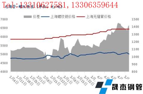 今年以來,國(guó)內(nèi)無縫管價(jià)格不斷走高,在近幾個(gè)月中的階段性調(diào)整中始終保持堅(jiān)挺運(yùn)行。以上海市場(chǎng)價(jià)格為例,截止5月7號(hào)上海市場(chǎng)108*4.5mm主流無縫管價(jià)格為6430元/噸,2月、4月出現(xiàn)兩波明顯的上漲行情,進(jìn)入5月價(jià)格開啟震蕩調(diào)整行情。通過對(duì)比上海地區(qū)無縫管與螺紋價(jià)差,我們可以發(fā)現(xiàn)兩個(gè)品種間的價(jià)差處于擴(kuò)張區(qū)間,108*4.5mm無縫管與20mm螺紋價(jià)差從年初的1090元/噸擴(kuò)大到1420元/噸。那么,目前無縫管價(jià)格堅(jiān)挺的主要原因有哪些?對(duì)于后期行情的參考點(diǎn)又在哪里?