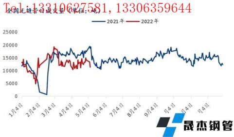而在近期無縫管廠開工率、產(chǎn)能利用率均有提升的情況下,市場(chǎng)供應(yīng)卻還是處于低位,其主要原因,其一,國(guó)內(nèi)疫情使得運(yùn)輸環(huán)節(jié)出現(xiàn)問題,市場(chǎng)發(fā)貨及終端到貨周期均有拉長(zhǎng),運(yùn)費(fèi)提高、到貨時(shí)間增加,市場(chǎng)到貨不及時(shí);其二,下游一定程度上還是存在訂單問題,貨物流轉(zhuǎn)從上中下游阻塞,市場(chǎng)客戶選擇主動(dòng)控制庫存,以維持供需的一個(gè)相對(duì)平衡。結(jié)合以上兩點(diǎn),目前市場(chǎng)供應(yīng)量低位運(yùn)行也是市場(chǎng)主被動(dòng)減庫的結(jié)果。在需求相對(duì)偏弱的情況下,市場(chǎng)客戶希望在其中尋找一個(gè)平衡點(diǎn),這也使得價(jià)格短期相對(duì)堅(jiān)挺。并且管廠方面,盡管供應(yīng)回升,他們面臨庫存回升的風(fēng)險(xiǎn),但他們同時(shí)也面臨較高的成本壓力,短期管坯資源緊張、價(jià)格高漲或是生產(chǎn)企業(yè)較為關(guān)心的問題。