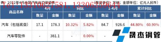 免責聲明:本網(wǎng)站(山東聊城晟杰無縫鋼管廠m.androidrecoverysoftware.com)刊載的“海關總署:4月中國出口汽車17.1萬輛,同比增長10.32%”等均源于網(wǎng)絡,版權歸原作者所有,且僅代表原作者觀點,本文所載信息僅供參考。轉(zhuǎn)載僅為學習與交流之目的,如無意中侵犯您的合法權益,請及時聯(lián)系刪除。本網(wǎng)站刊登此篇文章并不意味著本站贊同其觀點或證實其內(nèi)容的真實性,我們不對其科學性、嚴肅性等作任何形式的保證。如果侵犯了您的版權,請盡快聯(lián)系我們予以撤銷,謝謝合作!