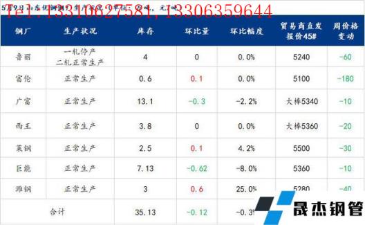 山東優(yōu)特?zé)o縫厚壁鋼管廠家?guī)齑?5.13萬噸,環(huán)比減少0.12萬噸,降幅0.34%,同比增加16.31萬噸,增幅86.66%。生產(chǎn)方面:魯麗一軋停產(chǎn),二軋正常生產(chǎn);臨沂江泉停產(chǎn)。