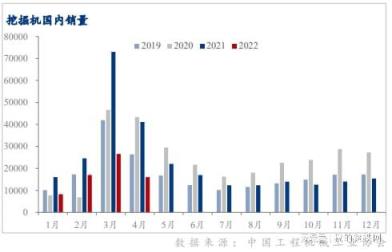 受疫情持續(xù)影響、房地產(chǎn)和基建工程開工率低迷等因素影響, 4月份工程機(jī)械的核心代表挖掘機(jī)銷售量同環(huán)比雙降。
