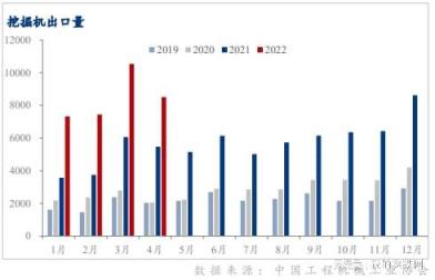 挖掘機(jī)出口一直保持著高速增長的態(tài)勢,4月出口量達(dá)到本月總銷量的34.65%,環(huán)比3月有所提高。主要是海外受到疫情影響,挖掘機(jī)供給不足,需求旺盛,促進(jìn)出口量持續(xù)增長。出口占比總銷量份額提升,也反映出總銷量下滑的背景下,國內(nèi)需求難以釋放。