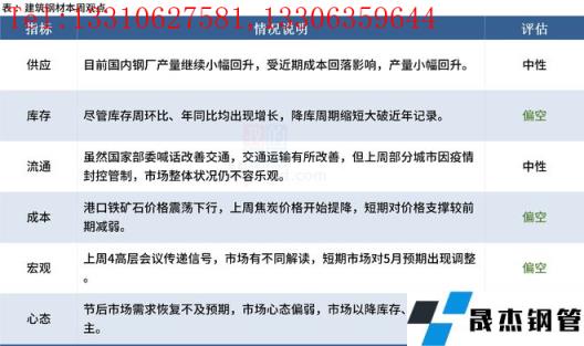總體來看,市場受到了多重因素擾動,預期出現(xiàn)調(diào)整。此外,各地疫情反復發(fā)生對市場需求產(chǎn)生持續(xù)性影響,致使各地停工和復工交替發(fā)生,需求表現(xiàn)較差,市場缺少有效支撐。本周,市場博弈加強,在新的利好消息或者供需調(diào)整完成前,鋼價將延續(xù)承壓下行趨勢。