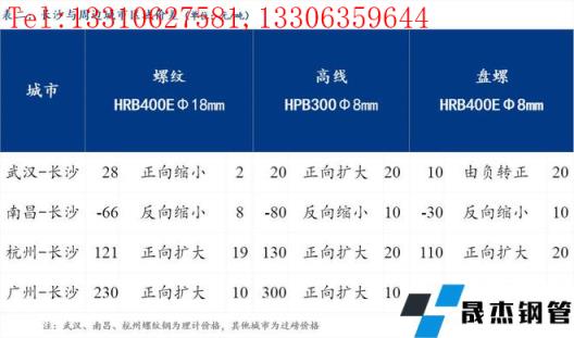 統(tǒng)一為理計單位后,武漢高于長沙28元/噸,南昌低于長沙66元/噸,杭州高于長沙121元/噸,廣州高于長沙230元/噸。