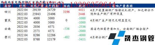 3、云南地區(qū)4月電弧爐無縫厚壁鋼管廠家日均建筑厚壁無縫鋼管產量為2036噸,環(huán)比減少536噸,降幅20.83%;同比減少2536噸,降幅55.47%。受省內供需矛盾持續(xù)加大,云南無縫厚壁鋼管廠家聯合控產,其中電弧爐無縫厚壁鋼管廠家不飽和生產,產量環(huán)比小幅下降。