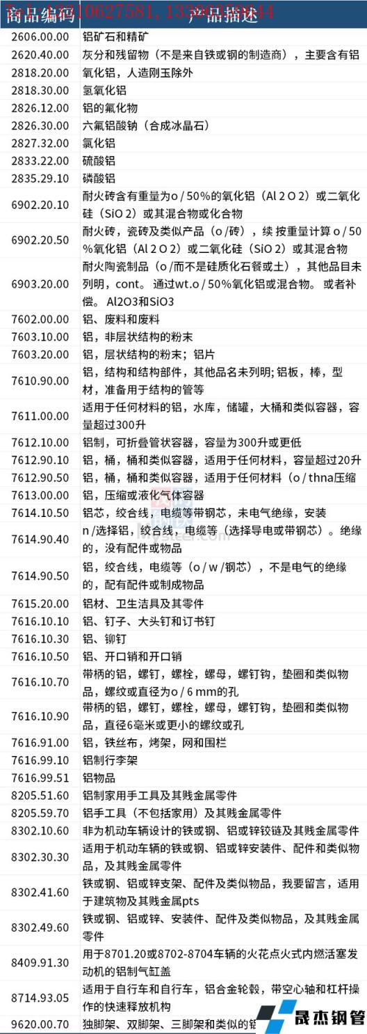 據(jù)不完全整理,美國征收中國產(chǎn)品關(guān)稅的清單,涉及鋁相關(guān)產(chǎn)品如下: