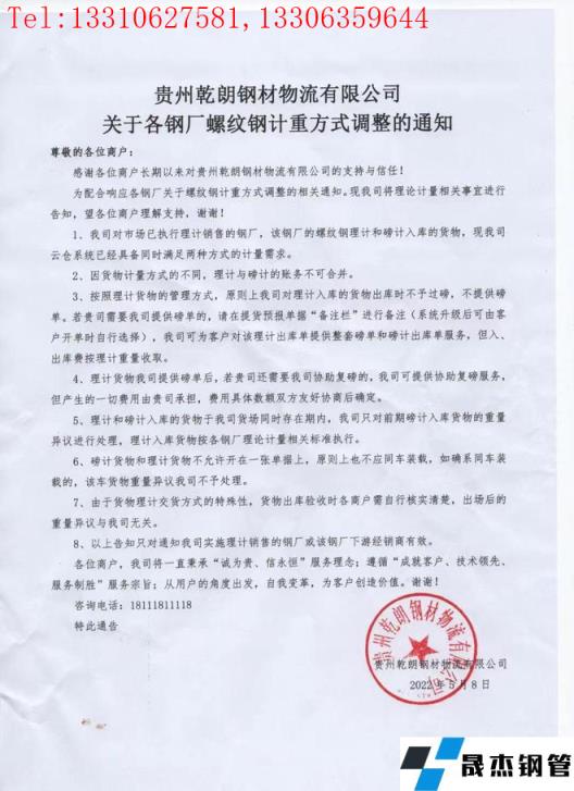 免責(zé)聲明:本網(wǎng)站(山東聊城晟杰無(wú)縫鋼管廠m.androidrecoverysoftware.com)刊載的“貴州乾朗鋼材_無(wú)縫鋼管物流有限公司關(guān)于各無(wú)縫鋼管廠家螺紋鋼計(jì)重方式調(diào)整的通知”等均源于網(wǎng)絡(luò),版權(quán)歸原作者所有,且僅代表原作者觀點(diǎn),本文所載信息僅供參考。轉(zhuǎn)載僅為學(xué)習(xí)與交流之目的,如無(wú)意中侵犯您的合法權(quán)益,請(qǐng)及時(shí)聯(lián)系刪除。本網(wǎng)站刊登此篇文章并不意味著本站贊同其觀點(diǎn)或證實(shí)其內(nèi)容的真實(shí)性,我們不對(duì)其科學(xué)性、嚴(yán)肅性等作任何形式的保證。如果侵犯了您的版權(quán),請(qǐng)盡快聯(lián)系我們予以撤銷,謝謝合作!