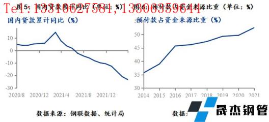 2020年8月,監(jiān)管層設(shè)置“三道紅線”的監(jiān)管指標(biāo),對(duì)房企進(jìn)行分檔管理,限制其有息負(fù)債擴(kuò)張速度;2021年1月,央行、銀保監(jiān)會(huì)建立房地產(chǎn)貸款集中度管理制度,對(duì)銀行業(yè)金融進(jìn)行管理制度,限制銀行資金過度流入地產(chǎn)行業(yè)。三道紅線及貸款集中制,限制了房地產(chǎn)企業(yè)表內(nèi)融資能力,這兩個(gè)政策在2022年2月開始對(duì)地產(chǎn)市場(chǎng)產(chǎn)生沖擊,國(guó)內(nèi)貸款同比自14.4%的高位持續(xù)回落,延續(xù)至今。至此,房地產(chǎn)企業(yè)的表外融資渠道、表內(nèi)融資渠道都有較大限制,房地產(chǎn)資金短缺問題成為重要的麻煩。但此階段,房地產(chǎn)企業(yè)尚未出現(xiàn)大的危機(jī),主要得益于房?jī)r(jià)上漲預(yù)期仍在,地產(chǎn)銷售偏好,預(yù)售資金來源尚能支撐地產(chǎn)企業(yè)運(yùn)行。