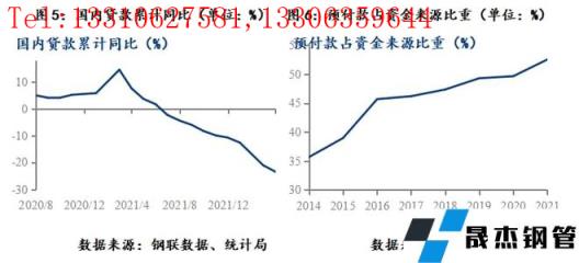 2020年8月,監(jiān)管層設(shè)置“三道紅線”的監(jiān)管指標(biāo),對(duì)房企進(jìn)行分檔管理,限制其有息負(fù)債擴(kuò)張速度;2021年1月,央行、銀保監(jiān)會(huì)建立房地產(chǎn)貸款集中度管理制度,對(duì)銀行業(yè)金融進(jìn)行管理制度,限制銀行資金過度流入地產(chǎn)行業(yè)。三道紅線及貸款集中制,限制了房地產(chǎn)企業(yè)表內(nèi)融資能力,這兩個(gè)政策在2022年2月開始對(duì)地產(chǎn)市場產(chǎn)生沖擊,國內(nèi)貸款同比自14.4%的高位持續(xù)回落,延續(xù)至今。至此,房地產(chǎn)企業(yè)的表外融資渠道、表內(nèi)融資渠道都有較大限制,房地產(chǎn)資金短缺問題成為重要的麻煩。但此階段,房地產(chǎn)企業(yè)尚未出現(xiàn)大的危機(jī),主要得益于房價(jià)上漲預(yù)期仍在,地產(chǎn)銷售偏好,預(yù)售資金來源尚能支撐地產(chǎn)企業(yè)運(yùn)行。