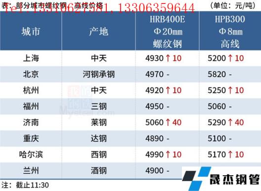 ◎杭州:12日早盤(pán)建材市場(chǎng)價(jià)格上漲10,螺沙4900中4890西城4870浙江華宏4800江蘇鑌鑫4800長(zhǎng)達(dá)抗震4870線材中天5250亞新5170聯(lián)鑫黃海盤(pán)螺5130。(單位:元/噸)