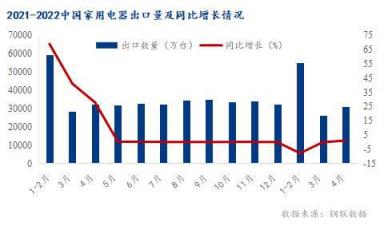 從統(tǒng)計局公布的最新數(shù)據(jù)看,2022年一季度中國家用電器出口數(shù)量為81097萬臺,相比2021年同期減少了7001萬臺,同比下降7.9%。其中4月中國家用電器出口量31164.8萬臺,同比增長1.0%。