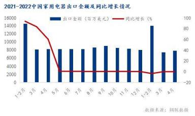 從統(tǒng)計局公布的最新數(shù)據(jù)看,2022年一季度中國家用電器累計出口金額29387百萬美元,同比下降5.3%。其中4月中國家用電器出口金額7860.0百萬美元,同比下降0.1%。