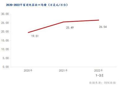 三、2022年一季度中國家用電器出口均價
