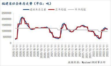 5月11日福建省建材總庫存合計(jì)94.79萬噸,與上周相比減少2.83萬噸,其中閩東41.91萬噸、閩南45.01萬噸、閩西北7.87萬噸。