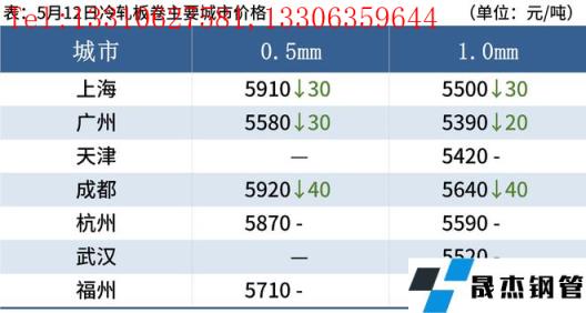 冷軋板卷:5月12日,全國24個(gè)主要城市1.0mm冷卷均價(jià)5569元/噸,較上個(gè)交易日下跌7元/噸。今日黑色系期貨盤面呈高開低走,現(xiàn)貨市場(chǎng)報(bào)價(jià)混亂,部分商家報(bào)價(jià)以穩(wěn)為主,今日成交表現(xiàn)偏差。心態(tài)方面,南方近期進(jìn)入汛期,市場(chǎng)需求或?qū)⒂兴鶞?,商家心態(tài)多謹(jǐn)慎,當(dāng)下操作以出貨成交為主。庫存方面,據(jù)不完全統(tǒng)計(jì),本周冷軋無縫厚壁鋼管廠家?guī)齑?3.05萬噸,周環(huán)比減少1.08萬噸,社會(huì)庫存136.81萬噸,周環(huán)比減少2.60萬噸,周消費(fèi)量83.81萬噸,環(huán)比增加0.50萬噸。綜合來看,故預(yù)計(jì)13日國內(nèi)冷軋板卷價(jià)格或?qū)⒄鹗幤踹\(yùn)行。