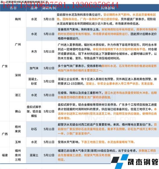 截至5月12日,據(jù)百年建筑網(wǎng)調(diào)研,3省建材市場(chǎng)和建筑工地進(jìn)度受到明顯影響。本次降雨是今年以來(lái)廣東遭遇強(qiáng)度最強(qiáng)、范圍最廣、持續(xù)時(shí)間最長(zhǎng)的強(qiáng)降水過(guò)程,城鄉(xiāng)積澇和地質(zhì)災(zāi)害風(fēng)險(xiǎn)極高,嚴(yán)重影響水泥企業(yè)出庫(kù)。目前降雨情況來(lái)看,多數(shù)施工項(xiàng)目會(huì)先暫緩施工進(jìn)度,觀望天氣情況再考慮施工的進(jìn)行。具體情況如下:
