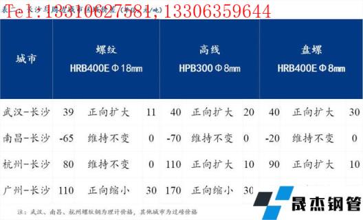 統(tǒng)一為理計(jì)單位后,武漢高于長(zhǎng)沙39元/噸,南昌低于長(zhǎng)沙65元/噸,杭州高于長(zhǎng)沙80元/噸,廣州高于長(zhǎng)沙110元/噸。