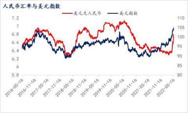 2022年3月,美聯(lián)儲宣布將基準(zhǔn)利率上調(diào)25個基點,正式進入加息周期,5月更是宣布一次性加息50個基點,引起了全球資本市場的動蕩,而美元作為全球避險資產(chǎn),在此輪加息過程中不斷走強,截至目前美元指數(shù)年內(nèi)漲幅高達(dá)8.57%。相比來看,從今年4月中旬開始,人民幣匯率卻出現(xiàn)連續(xù)大貶值的走勢,其中人民幣離岸匯率從4月18日的6.372快速貶至5月16日的6.79,幅度達(dá)到6.3%,在岸匯率同期從6.363貶至5月12日的6.7994,幅度達(dá)到6.86%。同期歐元貶值8.2%,日元貶值12.88%,韓幣貶值7.93%,而盧布年初至今對美元升值1.8%,澳元對美元微貶2.4%。從匯率上也可以看出,在全球通脹及美元走強背景下,能源原料出口國如俄羅斯、澳大利亞等國匯率相對堅挺,而產(chǎn)成品出口國如中國、日本、韓國等面臨較大貶值壓力。
