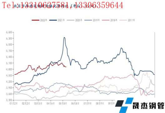 自四月下旬疫情在北京小范圍蔓延以來,京津冀建筑厚壁無縫鋼管價格震蕩趨弱運行?;仡櫛本┦袌鼋衲甑膬r格情況, 2月:需求提前收尾,生產(chǎn)節(jié)奏緩慢, 成本支持較高,價格小幅探漲30元/噸;3月:原料價格大漲,產(chǎn)量繼續(xù)縮減,庫存小幅去化,價格大幅走強220元/噸;4月,利好政策頻出,成本支撐較強,疫情反復(fù)影響,庫存去化受阻,價格上漲動力不強,僅趨強70元/噸。