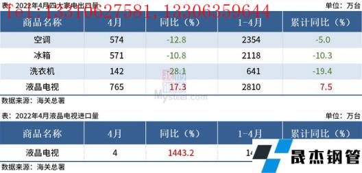 海關(guān)總署最新數(shù)據(jù)顯示,2022年4月中國出口空調(diào)574萬臺,同比下降12.8%;1-4月累計出口2354萬臺,同比下降降5%。
