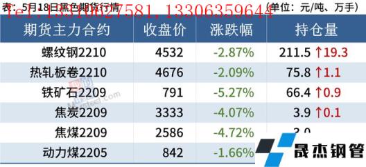 熱軋板卷:5月18日,全國24個主要城市4.75mm熱軋板卷均價4967元/噸,較上個交易日下跌46元/噸。黑色商品期貨整體下挫,成交明顯疲軟,市場情緒偏空。近日盤面的持續(xù)走弱,市場需求低迷態(tài)勢仍在延續(xù),目前受疫情制約因素依然明顯,從華東地區(qū)來看,需求短期難有明顯增量;另一方面,近期供應鏈渠道尚未完全打通,使得市場信心不足,疊加地產(chǎn)方面的利空數(shù)據(jù),短期價格將承壓趨弱。預計19日全國熱軋板卷或將趨弱運行為主。