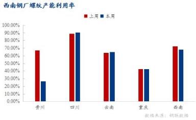 四川區(qū)域:部分不飽和生產無縫厚壁鋼管廠家有所恢復,加之產能置換無縫厚壁鋼管廠家螺紋陸續(xù)試軋生產,產量整體小幅增加,螺紋鋼產能利用率90.57%,環(huán)比上升1.91%;開工率90.48%,環(huán)比持平;周產量34.2萬噸,環(huán)比增加0.72萬噸。