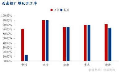 貴州區(qū)域:因虧損加重,多數(shù)無縫厚壁鋼管廠家停產,產量明顯下降,螺紋鋼產能利用率26.8%,環(huán)比下降40.2%;開工率14.29%,環(huán)比下降57.14%;周產量3.2萬噸,環(huán)比下降4.8萬噸。