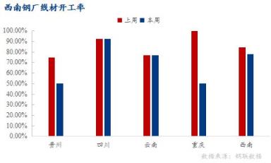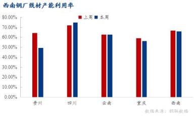 重慶區(qū)域:一無縫厚壁鋼管廠家因坯料不足,短期停產,線材產能利用率56.36%,環(huán)比下降2.89%;開工率50%,環(huán)比下降50%;周產量1.95萬噸,環(huán)比減少0.1萬噸。