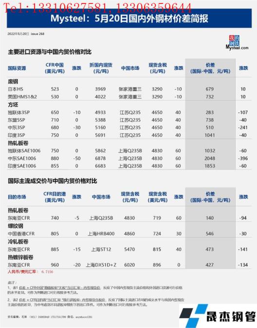 免責聲明:本網(wǎng)站(山東聊城晟杰無縫鋼管廠m.androidrecoverysoftware.com)刊載的“2022年05月20日日報:國內(nèi)外鋼材_無縫鋼管價差匯總(2022.5.20)”等均源于網(wǎng)絡,版權(quán)歸原作者所有,且僅代表原作者觀點,本文所載信息僅供參考。轉(zhuǎn)載僅為學習與交流之目的,如無意中侵犯您的合法權(quán)益,請及時聯(lián)系刪除。本網(wǎng)站刊登此篇文章并不意味著本站贊同其觀點或證實其內(nèi)容的真實性,我們不對其科學性、嚴肅性等作任何形式的保證。如果侵犯了您的版權(quán),請盡快聯(lián)系我們予以撤銷,謝謝合作!