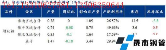 1、調研數(shù)據(jù)顯示,統(tǒng)計的河南地區(qū)10家建筑厚壁無縫鋼管樣本無縫厚壁鋼管廠家中,河南省建材無縫厚壁鋼管廠家螺紋鋼日產(chǎn)量1.47萬噸,產(chǎn)量較上周減少0.18萬噸。檢修/限產(chǎn)影響建材日產(chǎn)量為3.44萬噸,產(chǎn)能利用率為29.94%,較上周減少3.67%。