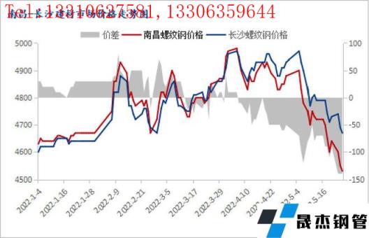 2022年以來(lái),長(zhǎng)沙、南昌建材市場(chǎng)價(jià)格在全國(guó)主要城市價(jià)格排名中,先后處于排名末位,在2022年1至3月中旬,長(zhǎng)沙建材價(jià)格徘徊于全國(guó)排名倒數(shù)5位,此間南昌螺紋鋼基價(jià)高于長(zhǎng)沙30-40元/噸左右,南昌螺紋鋼價(jià)格排名常處于倒數(shù)6-10位區(qū)間,略高于長(zhǎng)沙。從三月中旬開(kāi)始,南昌螺紋鋼基價(jià)已低于長(zhǎng)沙,到四月低,長(zhǎng)沙、南昌兩個(gè)難兄難弟全國(guó)排名雙雙長(zhǎng)時(shí)間盤踞于全國(guó)排名倒數(shù)五位。進(jìn)入5月后,南昌與長(zhǎng)沙兩地價(jià)差越拉越大,南昌螺紋鋼基價(jià)全國(guó)排名穩(wěn)穩(wěn)占據(jù)著倒數(shù)第一的位置,此時(shí)長(zhǎng)沙建材價(jià)格排名越來(lái)越高,已有較長(zhǎng)時(shí)間處于全國(guó)中游水平,截止目前長(zhǎng)沙與南昌的基差已拉大到140元/噸左右,具體價(jià)差變化情況如下圖所示。