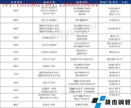 江蘇無縫厚壁鋼管廠家本周影響產(chǎn)量小幅減少,共計13家無縫厚壁鋼管廠家非正常生產(chǎn),較上周檢修停產(chǎn)鋼企數(shù)量持平,目前鐵水影響產(chǎn)量較上周增加0.6萬噸 /日,粗鋼影響產(chǎn)量較上周減少0.3萬噸 /日,成材影響產(chǎn)量減少增加1.55萬噸 /日。5月22日,印度政府出臺針對鋼鐵原料及產(chǎn)品的進(jìn)出口關(guān)稅調(diào)整政策。將焦煤、焦炭的進(jìn)口稅率由2.5%、5%降至0關(guān)稅;將寬度在600毫米以上的熱軋、冷軋及涂鍍板卷的出口關(guān)稅由0%提高至15%,不同鐵品位和品種的鐵礦石出口關(guān)稅上調(diào)至45%-50%不等。經(jīng)測算,該政策對鐵礦影響較大。同時,我們注意到電爐螺紋利潤-197元/噸,電爐無縫厚壁鋼管廠家持續(xù)虧損將觸發(fā)后期產(chǎn)量收縮,6月份多數(shù)無縫厚壁鋼管廠家將或面臨繼續(xù)減產(chǎn)的可能。具體情況及各主要品種日均影響產(chǎn)量(單位:萬噸)詳見下表: