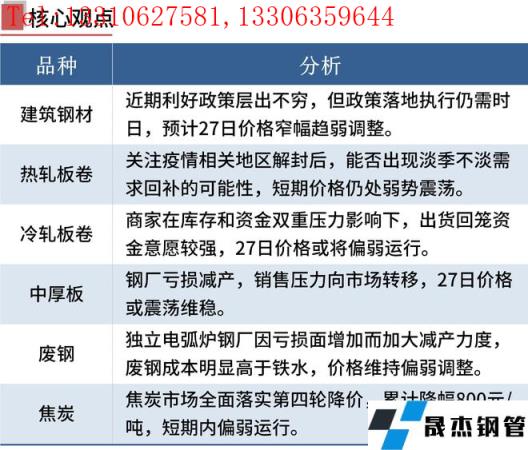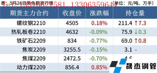建筑厚壁無縫鋼管:5月26日,全國31個主要城市20mm三級抗震螺紋鋼均價4744元/噸,較上個交易日下跌22元/噸。受現(xiàn)貨持續(xù)回落,本周無縫厚壁鋼管廠家減產(chǎn)范圍擴(kuò)大,螺紋鋼產(chǎn)量小幅下降,廠庫小幅上升,但社庫持續(xù)下降,表觀消費小幅回落。短期來看,盡管近期利好政策層出不窮,但政策落地執(zhí)行仍需時日。目前市場情緒依然偏空,短期仍然需要進(jìn)一步提振市場消費信心及投資信心。因此預(yù)計27日國內(nèi)建筑厚壁無縫鋼管價格或?qū)⒗^續(xù)窄幅趨弱調(diào)整為主。