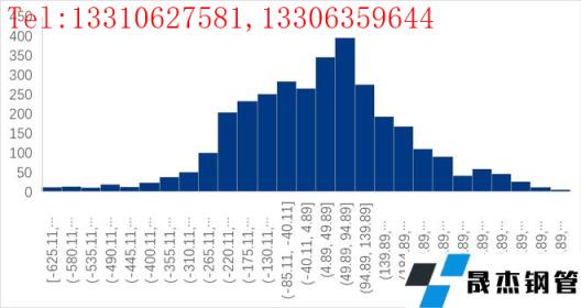 從卷螺差的年度跟蹤數(shù)據(jù)看,期貨市場卷螺差基本落在-200與500的區(qū)間內(nèi)。而回溯兩個品種上市交易來的所有時間段數(shù)據(jù),我們發(fā)現(xiàn),卷螺差值的概率分布基本符合一般正態(tài)分布形態(tài),因此可以進(jìn)行相關(guān)和回歸等統(tǒng)計分析,可基于統(tǒng)計原理進(jìn)行相關(guān)套利操作。同時,回溯兩個品種2009年以來現(xiàn)貨市場的價差值,其概率分布圖形狀跟期貨市場價差值大體一致。如圖1、圖2和圖3所示。