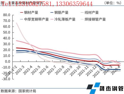 2022年4月份,鋼筋、線材、中厚寬鋼帶等日均產(chǎn)量為68.5萬噸、41.5萬噸、55.2萬噸,分別較上月增加2.7萬噸、1.6萬噸和2.6萬噸;冷軋薄板、焊接厚壁鋼管等日均產(chǎn)量11.5萬噸和16.0萬噸,分別較上月減少2.8萬噸和0.8萬噸。由于國內(nèi)疫情反復(fù),預(yù)計5月上半月主要品種厚壁無縫鋼管日均產(chǎn)量高位運行,下半月建筑厚壁無縫鋼管生產(chǎn)企業(yè)因虧損減產(chǎn)。