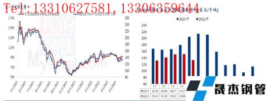 無縫厚壁鋼管廠家利潤方面,截至5月27日,調(diào)研河北螺紋噸鋼毛利-108元/噸,環(huán)比上月降低212元/噸,江蘇螺紋噸鋼毛利10元/噸,環(huán)比上月降低164元/噸。河北區(qū)域噸鋼毛利持續(xù)下跌,目前鋼價已經(jīng)跌破無縫厚壁鋼管廠家生產(chǎn)成本。江蘇區(qū)域噸鋼毛利現(xiàn)處于盈虧線附近,無縫厚壁鋼管廠家利潤十分微薄。