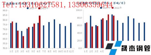 但隨著疫情影響的消退,按正常生產(chǎn)節(jié)奏上高爐鐵水產(chǎn)量月環(huán)比依舊出現(xiàn)增量,因此生產(chǎn)日耗增加,同時為保證廠內(nèi)正常生產(chǎn),在疫情常態(tài)化無縫厚壁鋼管廠家提貨需求也不斷增加,廠內(nèi)庫存維持近兩月的相對高位。