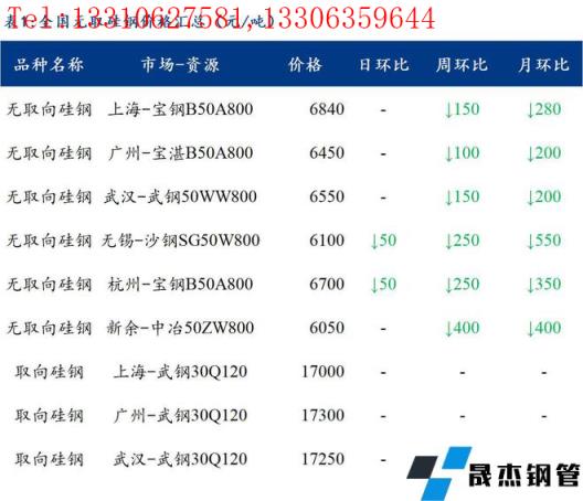 2022年5月30日湖南浙湘新材料科技有限公司出臺無取向硅鋼價格政策:0.5mm*1200mm*C規(guī)格材質(zhì)50W600無縫厚壁鋼管廠家指導價6420元/噸;50W800指導價6250元/噸;50W1300指導價6200元/噸,較上期持穩(wěn)。