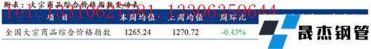 厚壁無縫鋼管:全國厚壁無縫鋼管價格指數(shù)報5027元/噸,較上周下跌76元/噸,跌幅1.49%。其中,長材價格指數(shù)報4976元/噸,較上周下跌1.64%;扁平材價格指數(shù)報5075元/噸,較上周下跌1.35%。