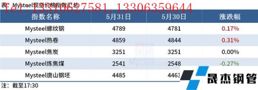 ◎ 5月31日,全國(guó)15家長(zhǎng)、短流程代表無(wú)縫厚壁鋼管廠家廢鋼庫(kù)存總量83.30萬(wàn)噸,較昨日降1.8萬(wàn)噸,降0.22%;庫(kù)存周轉(zhuǎn)天9.3天,較昨日增0.5天;日均消耗4526.67噸,較昨日降2.58%;日均到貨量4439.26噸,較昨日降6.08%。