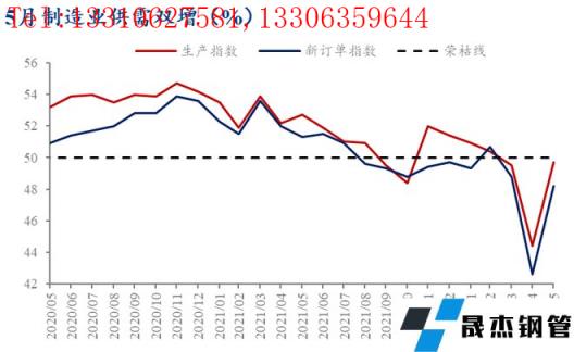 二、5月制造業(yè)PMI指數(shù)呈供需雙增的態(tài)勢,需求回升力度大于供給,大體符合前期判斷。4月筆者發(fā)布的文章《4月制造業(yè)PMI指數(shù)低迷,未來厚壁無縫鋼管消費何去何從?》中便提到,隨著我國經(jīng)濟逐步復蘇,需求復蘇的彈性將快于供給端。從數(shù)據(jù)來看,5月新訂單指數(shù)大幅回升5.6個百分點至48.2%,回升幅度高于生產(chǎn)指數(shù)。據(jù)國家統(tǒng)計局數(shù)據(jù),5月專用設備、汽車等行業(yè)生產(chǎn)指數(shù)較上月大幅上升10個百分點以上,升至擴張區(qū)間;石油煤炭及其他燃料加工、化學原料及化學制品、黑色金屬冶煉及壓延加工等行業(yè)新訂單指數(shù)重回擴張區(qū)間。