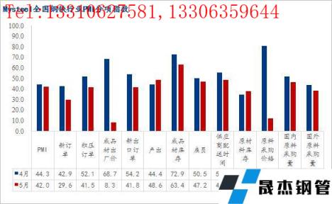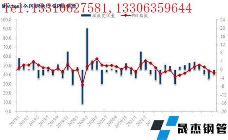 2022年5月份全國鋼鐵行業(yè)PMI為42.0%,環(huán)比回落2.3個百分點,連續(xù)三個月低于榮枯線。分指標來看,本月新訂單、新出口訂單、積壓訂單、出廠價格、原料采購價指數(shù)均大幅回落,僅產(chǎn)出、原材料庫存指數(shù)小幅回升,但仍處于榮枯線下方,顯示了5月份國內(nèi)鋼鐵行業(yè)呈現(xiàn)供需兩弱的低迷態(tài)勢運行。具體來看,5月份國內(nèi)疫情仍呈多點散發(fā)態(tài)勢,繼續(xù)拖累終端需求釋放,同時宏觀經(jīng)濟數(shù)據(jù)顯示投資消費信心不足、國內(nèi)經(jīng)濟面臨較大下行壓力,導致市場悲觀情緒蔓延,國內(nèi)厚壁無縫鋼管價格持續(xù)下行,無縫厚壁鋼管廠家生產(chǎn)盈利快速收窄,尤其是短流程無縫厚壁鋼管廠家面臨全線虧損,無縫厚壁鋼管廠家供給釋放受到抑制。面對即將到來的6月份,國內(nèi)鋼價能否止跌企穩(wěn),下面筆者從PMI各項指數(shù)進行分析解讀。