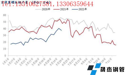 從上圖可以看出,5月份京津冀建筑厚壁無縫鋼管無縫厚壁鋼管廠家的螺紋鋼產(chǎn)量緩慢提升,雖然中下旬產(chǎn)量有所下降,但是仍處于相對高位,不過低于往年同期水平。截至5月底,螺紋鋼周產(chǎn)量為37.51萬噸,產(chǎn)量月環(huán)比提升17.6%,較去年同期低21.3%。本月除承鋼受當?shù)匾咔橛绊?,原料運輸受阻,高爐有檢修情況,導致建材產(chǎn)量有所下降外,其他無縫厚壁鋼管廠家如敬業(yè)、東華、東海特鋼、樂鋼等月產(chǎn)量均有所提升,且隨著運輸情況緩解,無縫厚壁鋼管廠家廠內(nèi)資源陸續(xù)向周邊市場分流。從調(diào)研情況來看,當前無縫厚壁鋼管廠家螺紋鋼生產(chǎn)成本在4500-4600元/噸,雖然利潤微薄,但是6月份也無檢修計劃,且產(chǎn)量或較5月份有提升。
