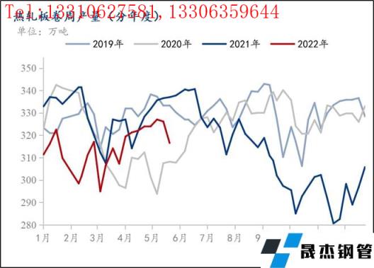 綜合來看,5月熱軋卷板行情整體呈現(xiàn)弱勢下行階段,近期震蕩磨底。基本面來看,產(chǎn)量方面下周沙鋼無縫厚壁鋼管廠家檢修會繼續(xù)維持,其余無縫厚壁鋼管廠家略有降負(fù)荷,但并沒有過多的產(chǎn)量影響,短期產(chǎn)量變化不大。