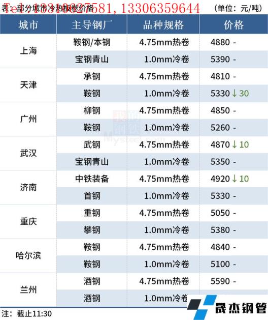 ◎天津:7日早盤冷軋市場(chǎng)價(jià)格下調(diào)30元/噸,1.0天鐵5340元/噸;首鋼5330元/噸,唐鋼5300元/噸,成交一般。(單位:元/噸)